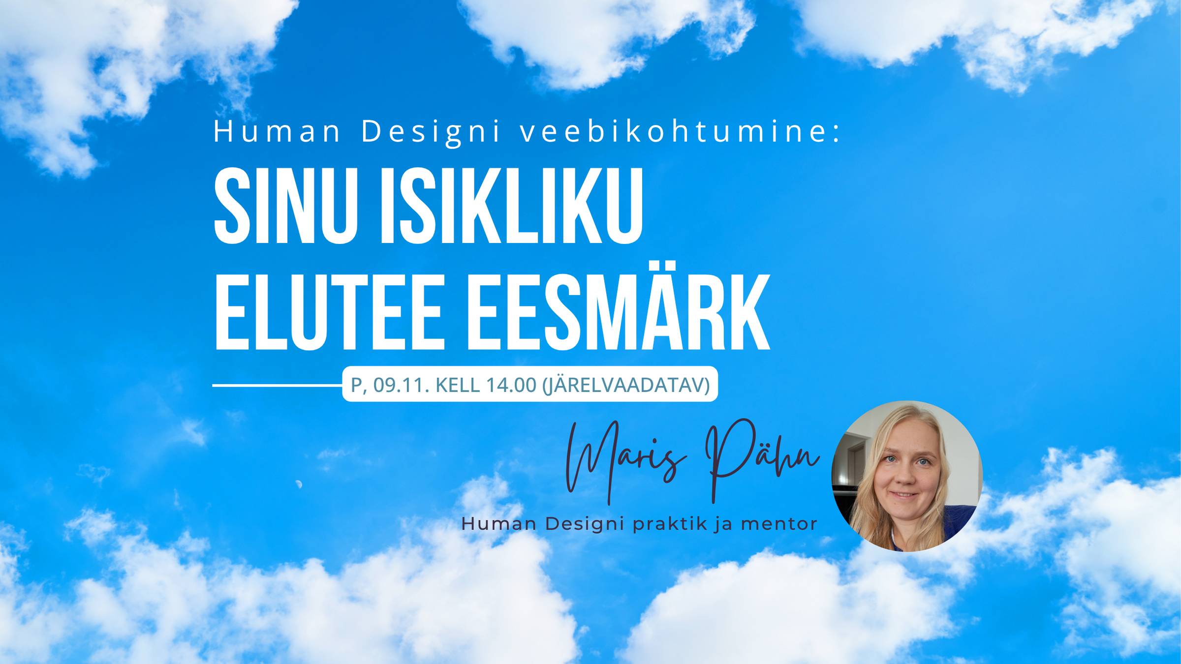 Kutsun sind järelvaadatavale veebikohtumisele 9.novembril "Sinu elutee eesmärk", kus räägime Human Designi võtmes: ✨ Sinu isikliku elutee eesmärgist; ✨ Deconditioning'ist - võõrastest mustritest vabanemisest; ✨ Kuidas Kuu põhja- ja lõunasõlmed sinu Human Designi kaardis näitavad hinge teekonda minevikust tulevikku.