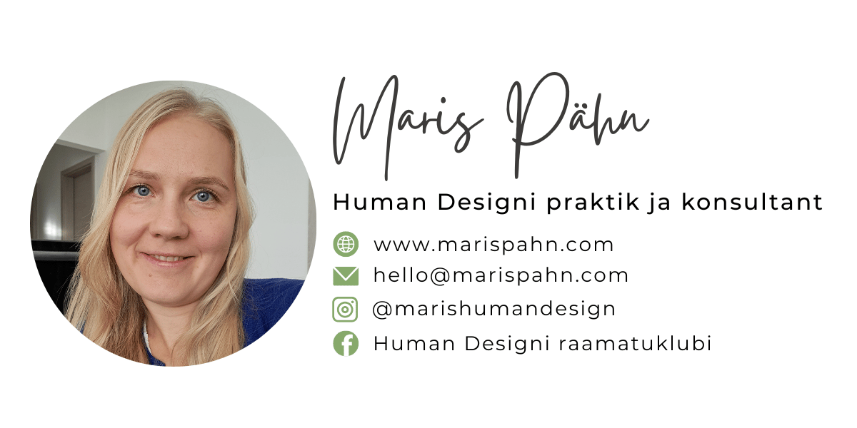 Kuna kõike seda on palju, ja info üleküllus on meie ajastule nii omane, tarbime tihtipeale ka sellist infot, mis tegelikult pole üldse meile mõeldud. Nii võib juhtuda, et märkamatult on aju ületoidetud. Nagu keha, mis on saanud liiga palju toitu, muutub ka ületoidetud aju loiuks, kohmakaks ega suuda enam selgelt eristada, mis on oluline ja mis mitte. Kuidas hoida meel selge ja taju terav?Hea Reader, võta hetk ja vaata oma Human Designi kehakaarti - milline on sinu seedimisviis? Milline toitumine ja infokeskkond sinu keha ja ajutööd kõige paremini toetab? (Kui sul veel pole, siis saad oma variaablikaardi luua siin). Teiseks: piilu ka paremat alumist noolt Perspektiiv e Vaade (Perspective / View). See näitab, milline info mürarikkas maailmas on just sinu jaoks oluline ja tervislik. Meil kõigil on oma unikaalne vaatenurk: justkui värvilised prillid läbi mille ümbritsevat maailma filtreerime. Kui tunneme oma Perspektiivi, saame teadlikumalt valida, millist infot sisse lasta, nii et see oleks kooskõlas sellega, mida siia ilma nägema tulnud oleme. Kas tunned, et soovid mulle vastu kirjutades jagada, millised on sinu noolekesed? Loen huviga!🍓 Suvist kergust ja teravat taju! Maris |